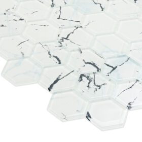 White Hexagon Marble-Look Glass Tile – Sleek, Modern Elegance with a Luxurious Touch