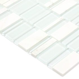 Modern Harmony: Marble & Glass Rectangular Mosaic Tile – M3111
